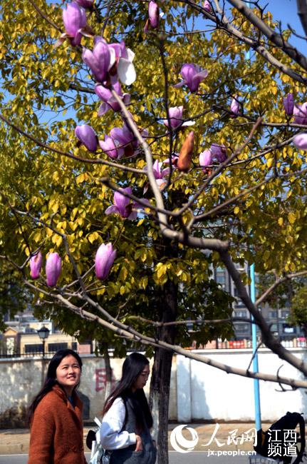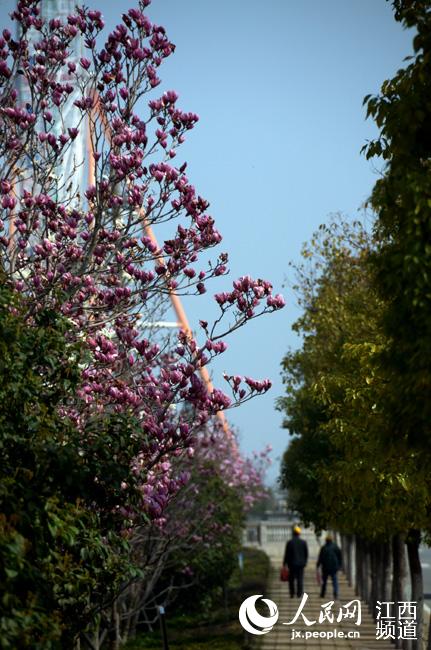 人民网南昌3月12日电(时雨)结束了长时间的阴雨天气,12日,南昌终于迎来了明媚的春日阳光,“憋屈”许久的花草树木已经迫不及待的吐出绿芽长出红花,再加上天空的“蓝幕”,整个城市洋溢着春天的气息,令人心旷神怡。尽管当天是工作日,但仍有不少市民在中午时分走出户外享受暖暖的阳光。